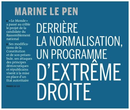 Je pense qu’il n’est pas nécessaire que je commente le programme de Le Pen pour la présidentielle truffé de contre vérités, de propositions totalement surréalistes et inapplicables et de mesures toutes plus anticonstitutionnelles les unes que les autres.