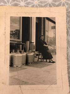 Ma grand mère Lucie sur le pas de son échoppe située au croisement de la rue Branly et du Bld de la Boissière …. vers 1955.